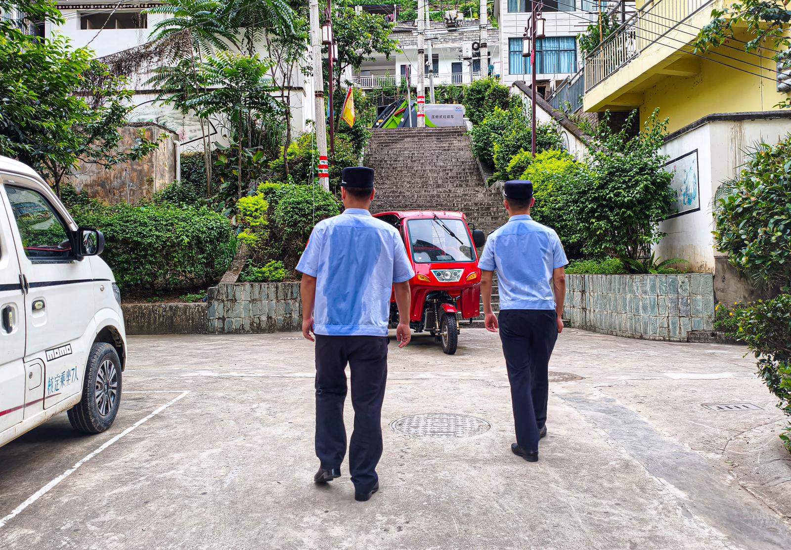 从居民周大妈家出来,钟叶军和搭档张先明沿着社区小道前行,烈日毫无遮拦地照在身上,没走几步,刚捂干的警服又紧紧地贴在了他的后背。