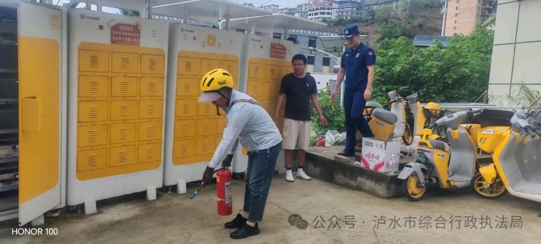 为进一步加强特许经营共享电动自行车运营企业的安全管理,保障市民出行安全。6月26日,泸水市综合行政执法局联合泸水市消防救援大队,对辖区内共享电动自行车运营企业的充电桩及办公点开展了全面安全指导工作。