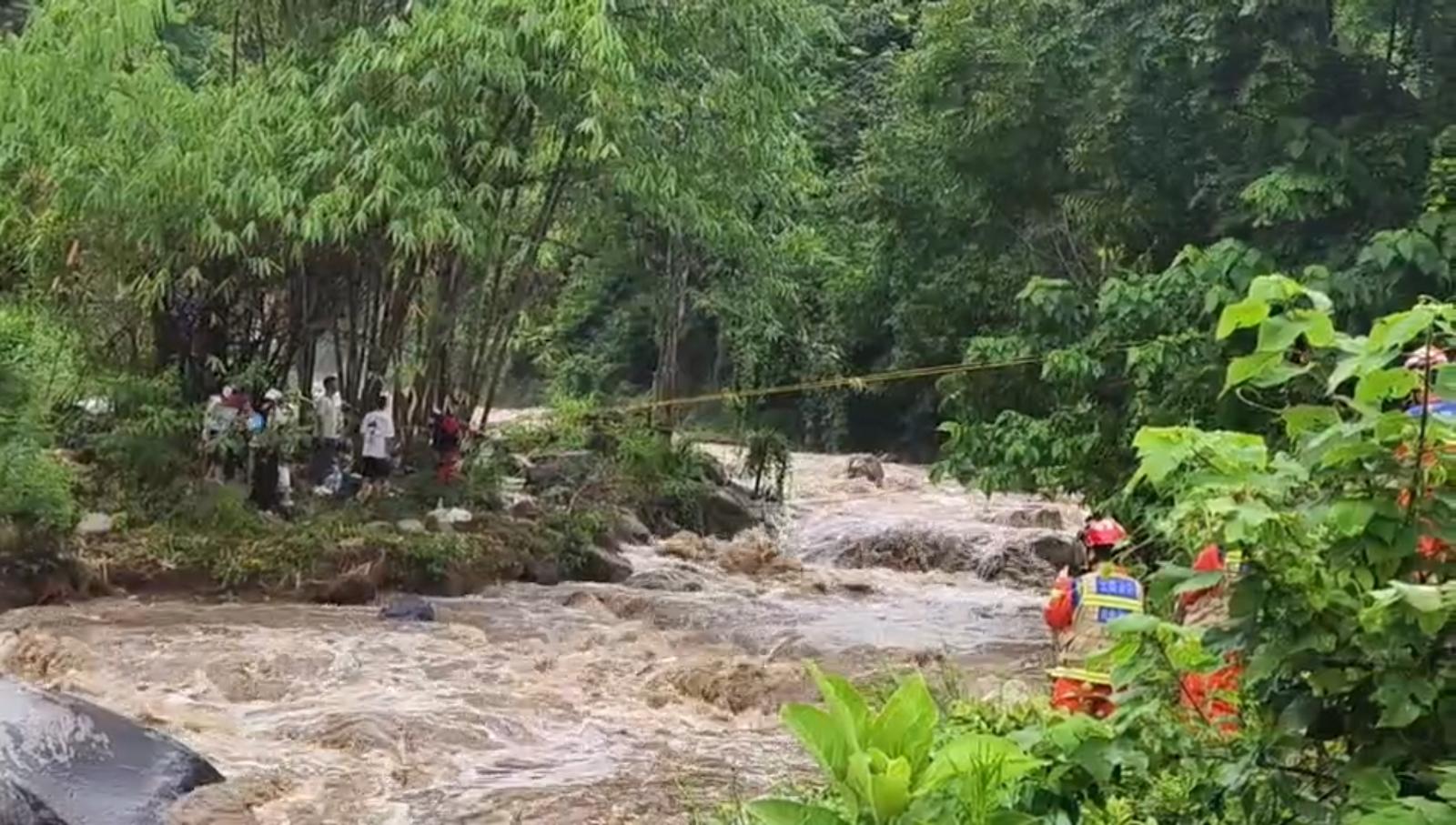 7月3日下午,降雨导致泸水市蛮蚌河河水上涨,当地群众9人被困河中。