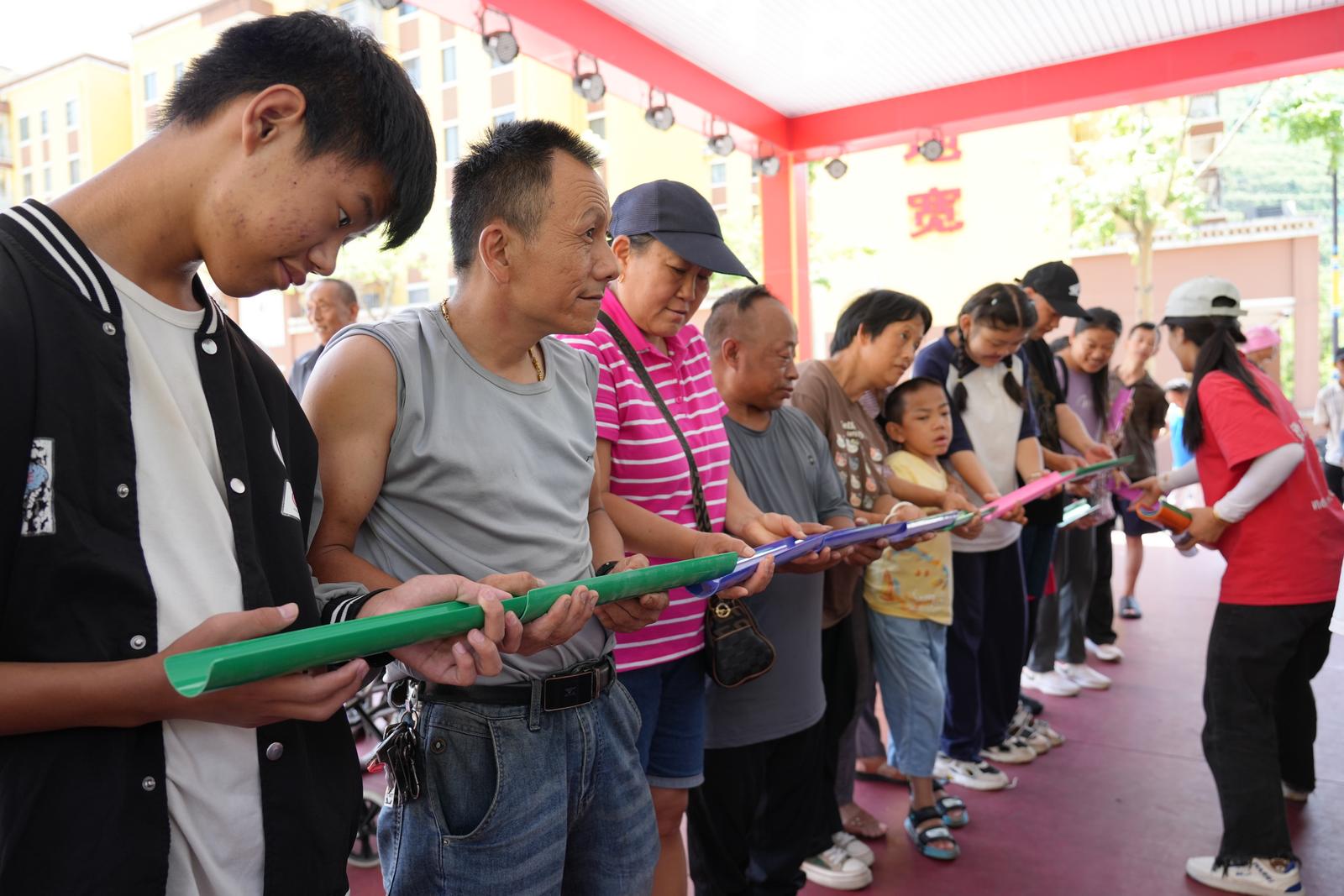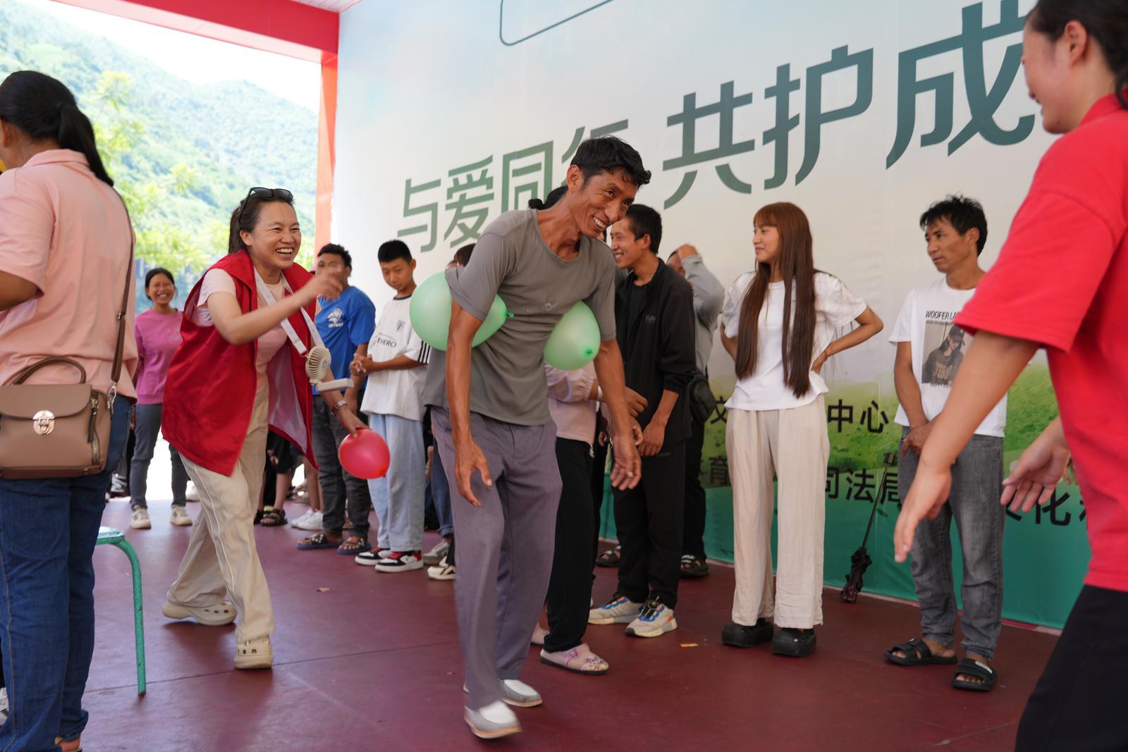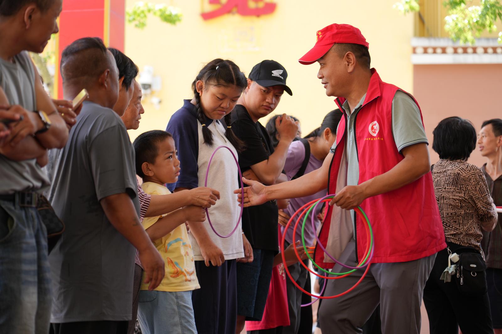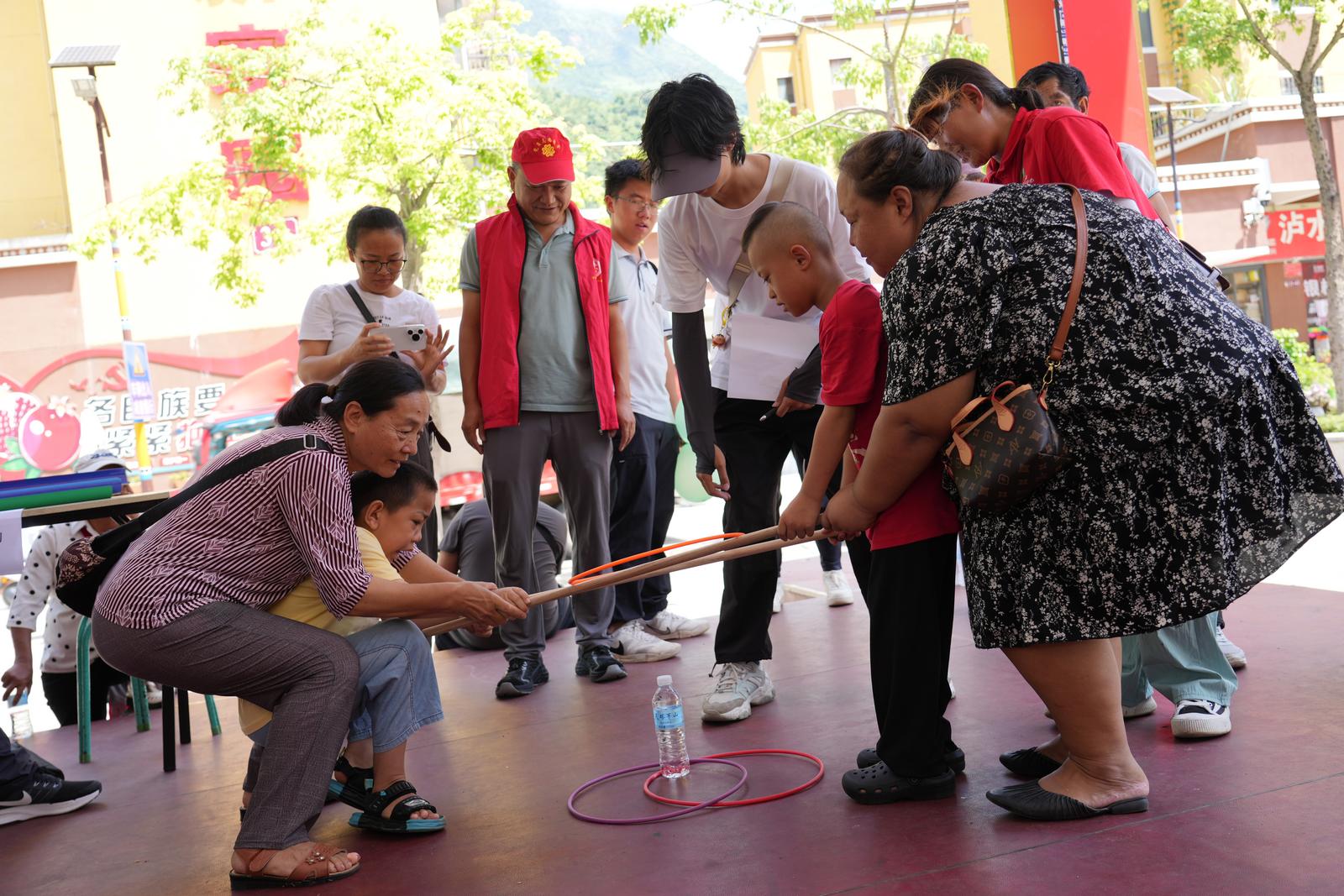 活动当天,阳光明媚,和谐社区的广场上充满了欢声笑语。来自泸水市六库街道、大练地街道、上江镇的45名智力残疾人在志愿者的陪伴下,积极参与到“同心运环、接力传球、企鹅漫步”三项趣味体育活动中。