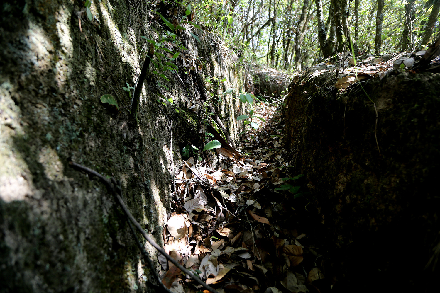一只山鼠慌不择路地从我脚背掠过,我本能地想要惊呼出声,但又生生压了下去,我不敢惊扰先烈的英魂,也为自己的贸然闯入感到歉疚。山脊上,纵横交错的战壕堆满腐叶,像是一道道无法愈合的丑陋伤疤,曾经坚不可摧的碉堡,早已坍塌成长满苔藓的小石堆。